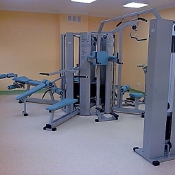 8-station model for sports facilities, for 8 people. Stands: bench press, butterfly, overhead/underlift, leg exercises, incline bench. Steel profile construction, stacks up to 140 kg with magnetic adjustment. Anatomical upholstery for comfort and safety.
