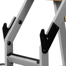 Barbell press bench with 2-level beams and non-slip slats. Seat adjustment in 7 degrees allows you to fit your height. Construction of 125x60x3 flat-oval steel profiles with dimensions of 143/124/185 cm. Weight 120 kg, max weight of exerciser 150 kg.