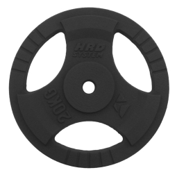 Cast iron load with a weight of 20 kg, a hole diameter of 29 mm and a disc diameter of 39 cm. The thickness ranges from 29 mm to 44 mm. Sturdy and durable, ideal for standard grips during advanced strength training.