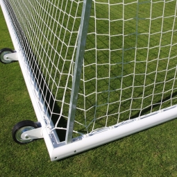 - This is the most versatile solution, combining the advantages of stationary and mobile gates. They are equipped with transport systems, usually in the form of swivel casters, which allow them to be easily moved around the field without the need for disassembly. Mobile goals are ideal for use on training fields, where quick removal of goals from the playing field is required after a game. Equipped with drop-down casters, they can be easily moved even over longer distances, and with the ability to fill the base frame with sand, their stability during play is guaranteed without the need for additional ballast. Mobile goals also use special net fastening systems (such as UMOS holders), which ensure quick installation and removal of the net, further increasing the functionality and convenience of use.