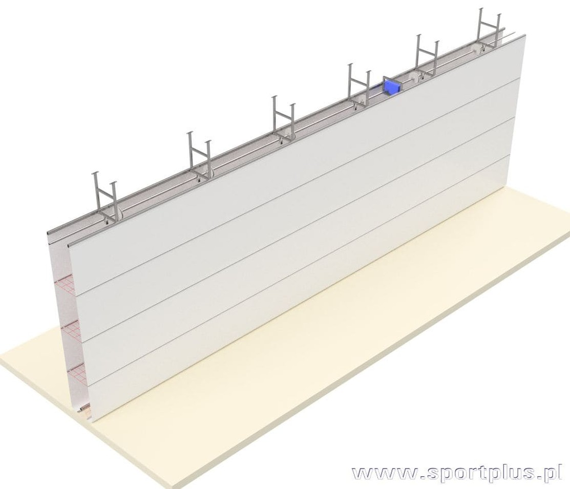 Acoustic curtains offered by SPORT PLUS are made using modern technology of joining panels with system aluminum profiles. The panels used are PVC panels with a standard weight of 1200g/m2, joined by system aluminum profiles (kedar system). The edges of the panels, finished with kedar cord, are installed and connected with aluminum profiles during the installation of the curtain. This makes it easy to replace individual panels in case of, for example, damage or a change in the color concept of the hall.