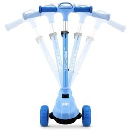 Możliwość postawienia hulajnogi bez potrzeby opierania o ścianę - w tym celu należy pociągnąć uchwyt służący do składania i lekko obniżyć przód podestu, tak aby dotykał podłoża.
