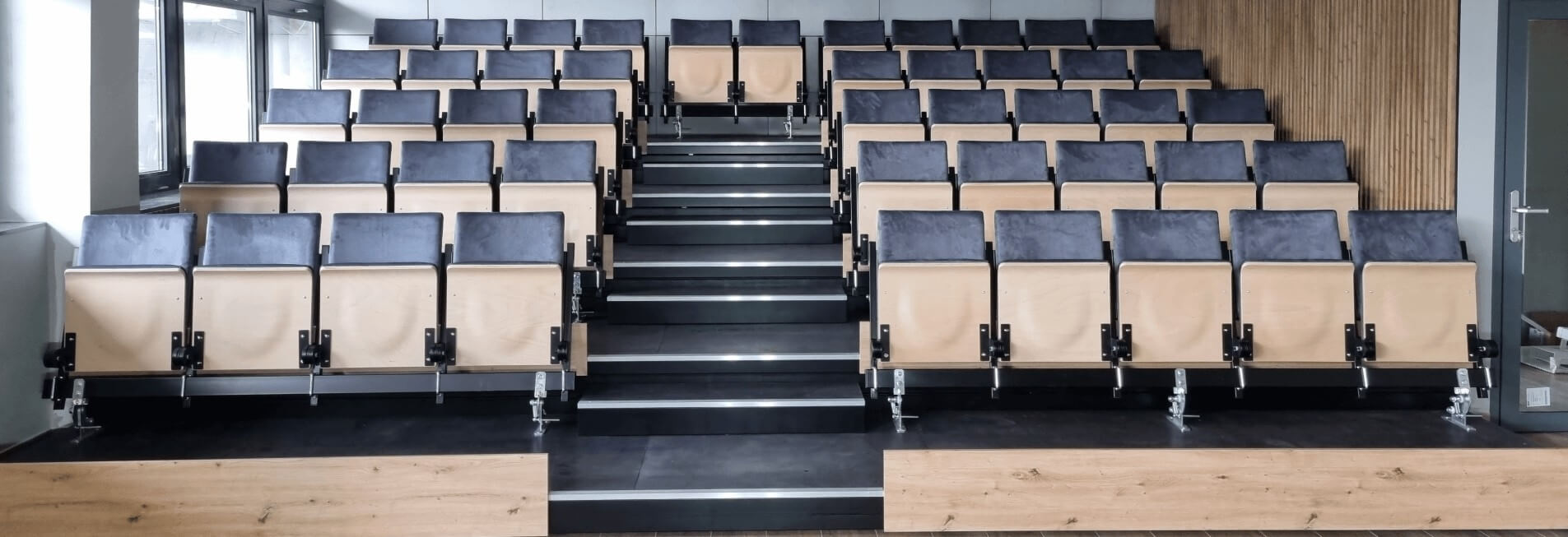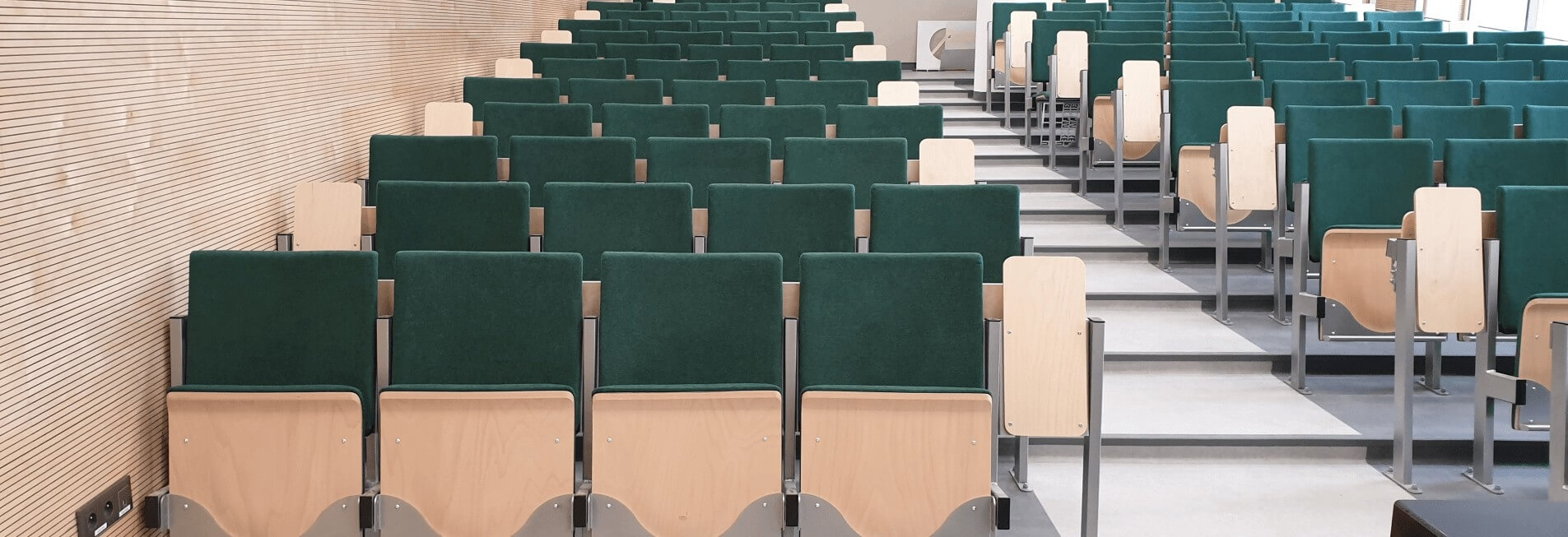 Auditorium seating system with folding desks in lecture hallAGH University of Science and Technology, Cracow, Poland -